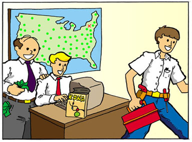 SOLUTION: Install Kiosk DNA on your network.   RESULTS: Send out content to just the kiosks that need it, when they need it. Monitor all your units remotely and send your techs out only when absolutely needed to fix physical problems. Happy customers, happy boss!